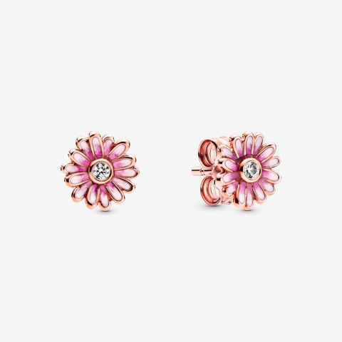 Çəhrayı Papatya Çiçəkli Düyməli Sırğalar