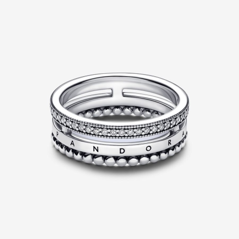 Pandora Signature Loqo Pave və Muncuqlarla Üzük